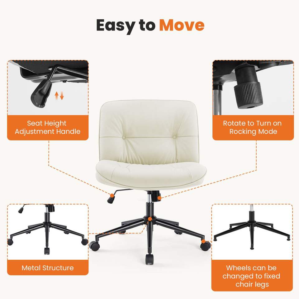 เก้าอี้สำนักงานทันสมัย นั่งสบาย ปรับระดับความสูงได้ ขาไขว้ ไม่มีที่วางแขน เบาะนั่งกว้าง มีล้อ สำหรับทำงานคอมพิวเตอร์