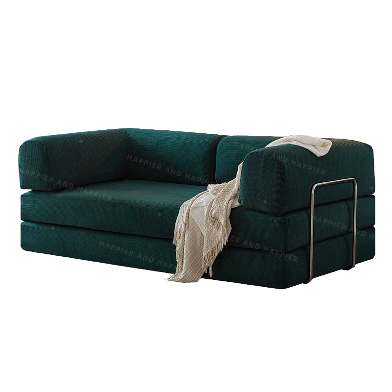 เตียงโซฟาผ้าทรงสี่เหลี่ยมแบบบีบอัดที่ทันสมัยพร้อมขาสแตนเลสชุดสุญญากาศสำหรับวิลล่าห้องนั่งเล่น