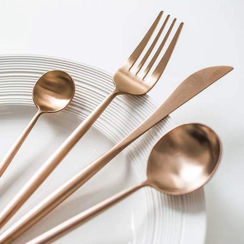 ชุดช้อนส้อมโลหะทันสมัย ดีไซน์สวยงาม ทนทาน เหมาะสำหรับโต๊ะอาหาร ห้องครัว ร้านกาแฟ และบริการรับรองแขก