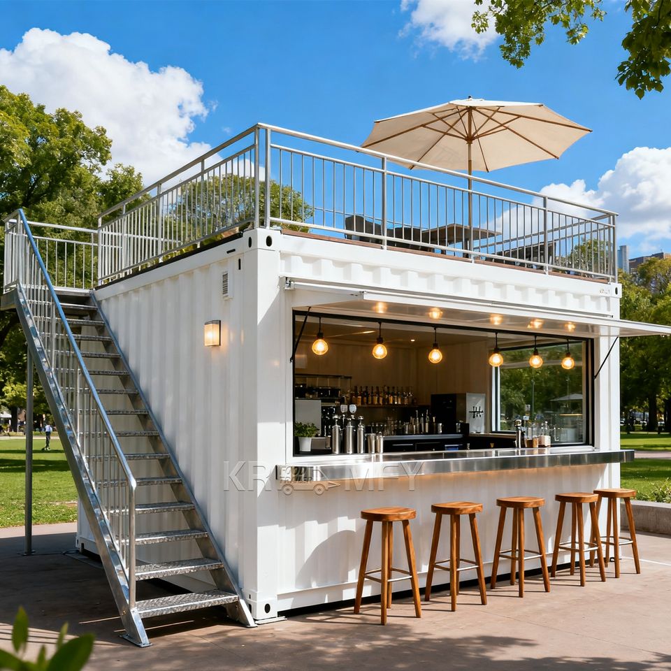 ร้านกาแฟเคลื่อนที่สมัยใหม่ ร้านค้าแบบคอนเทนเนอร์ แข็งแรง ทนทาน ใช้พื้นที่ได้ดี