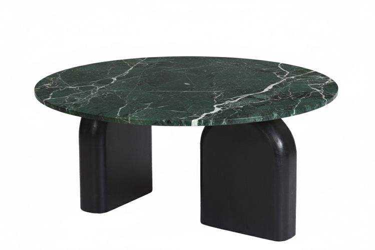 Modern Contemporary Round Coffee Table with Solid Wood and Marble Top Handmade