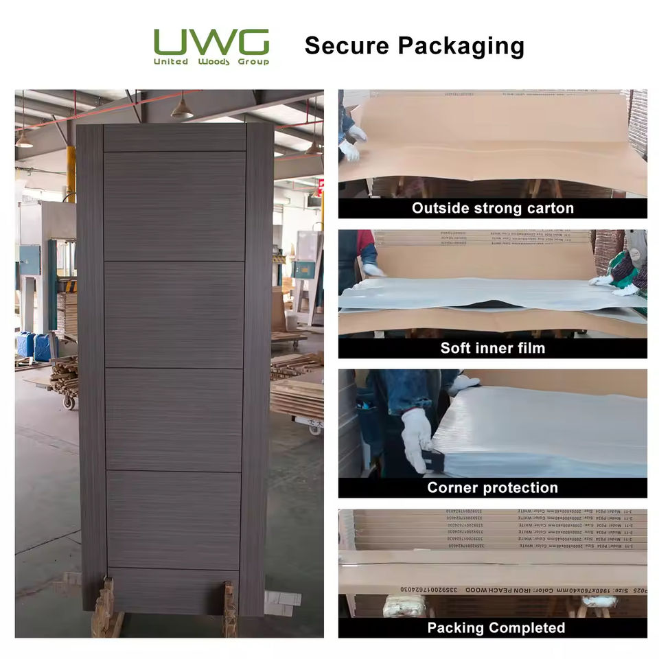 ยูไนเต็ดวูดส์ ประตูห้องนอน ห้องนั่งเล่น สไตล์โมเดิร์นร่วมสมัย วัสดุไม้วีเนียร์เคลือบเมลามีน MDF กันน้ำ PVC หรูหรา สีสั่งทำได้