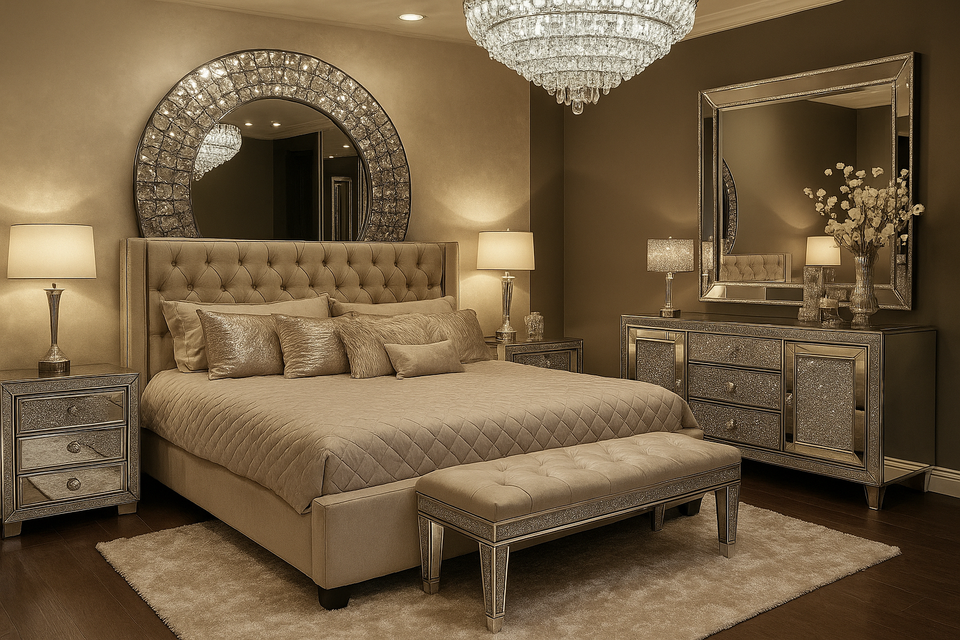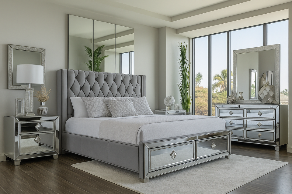 ชุดห้องนอนขนาดคิงไซส์เปิดประทุนแบบทันสมัยพร้อมกระจกสำหรับใช้ในอพาร์ทเมนต์และโรงแรม