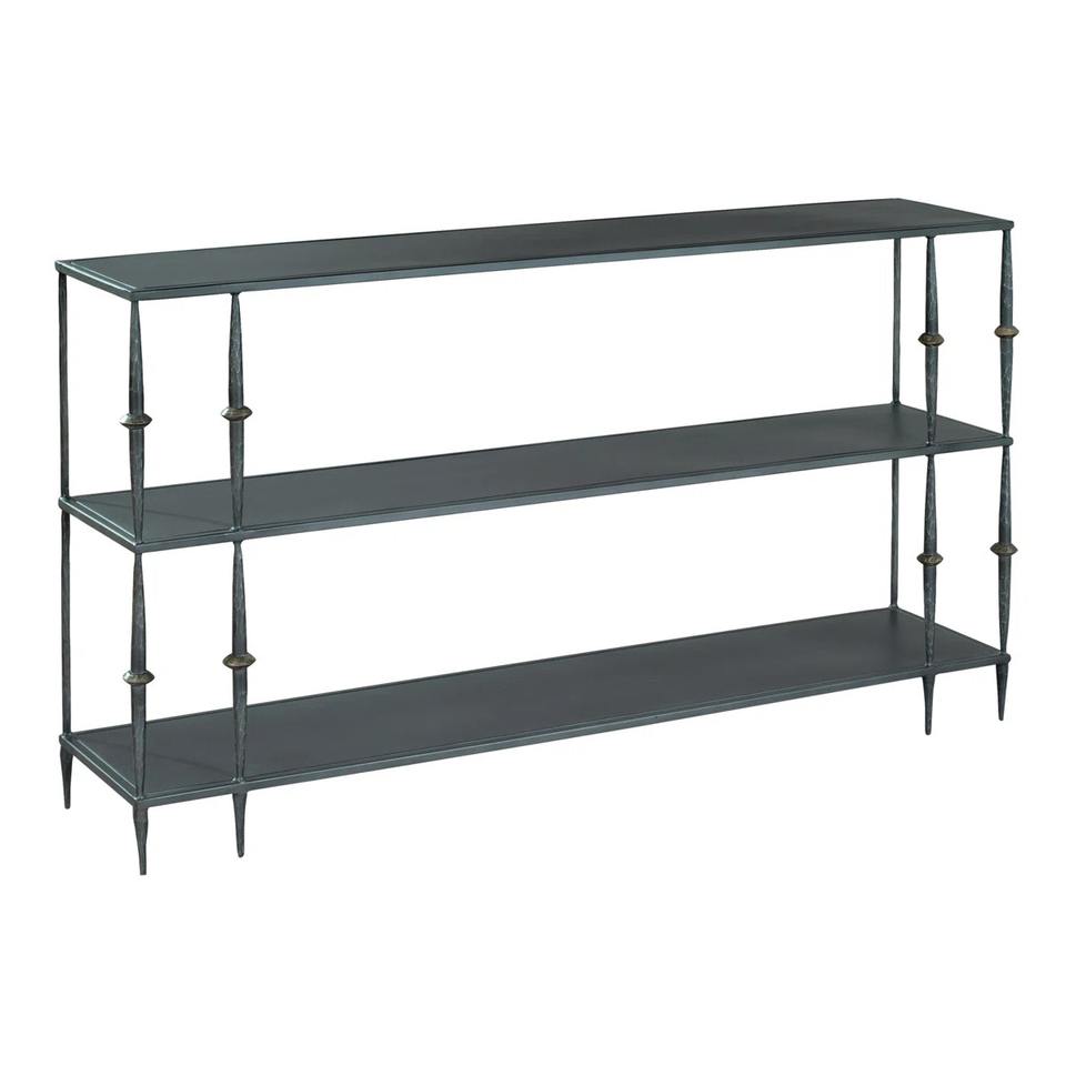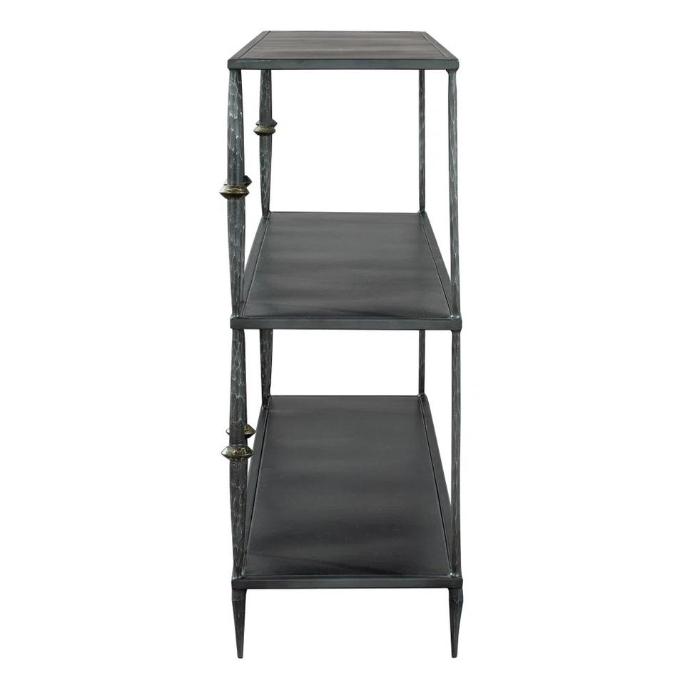 ชั้นวางหนังสือแบบปรับเปลี่ยนได้ทันสมัยทรงแคบ สีดำเหล็ก พร้อมตกแต่งด้วยทองเหลืองโบราณ สำหรับใช้ในโรงแรม