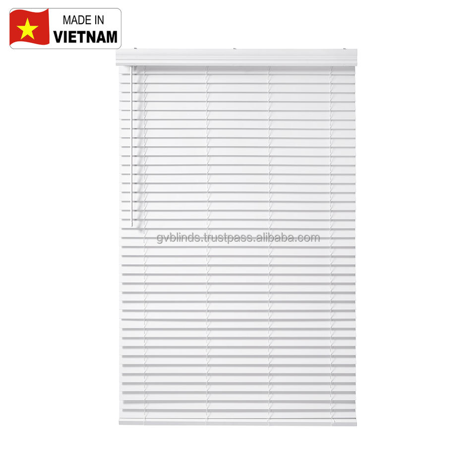 Modern Cordless Fauxwood Window Blinds Venetian Plastic Flat Plate with Upper Open Standard Side Installation Made in Vietnam
