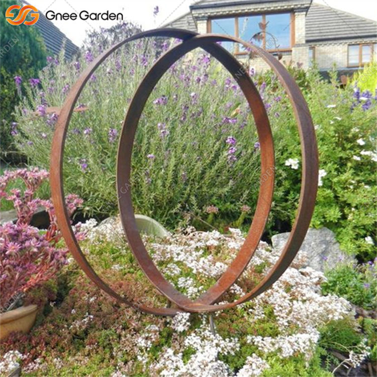 ประติมากรรมห่วงเหล็กคอร์เทนที่ทันสมัยศิลปะโลหะขึ้นสนิมทำด้วยมือสำหรับตกแต่งสวน