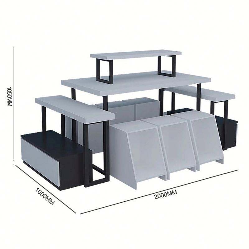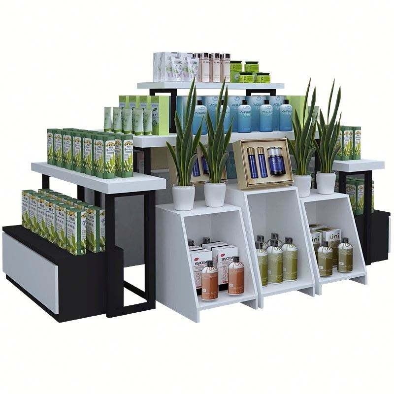 โต๊ะโชว์เครื่องสำอางทันสมัยตู้โชว์โชว์ไม้และเหล็กปรับแต่งได้ชั้นวาง