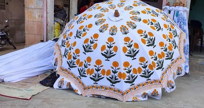 ร่มพับกลางแจ้งผ้าฝ้ายทันสมัย ลายพิมพ์อินเดีย สำหรับตกแต่งงานปาร์ตี้ ป้องกันแสงแดดในสวน ทำด้วยมือ ไม่รองรับการใช้งานอื่นๆ