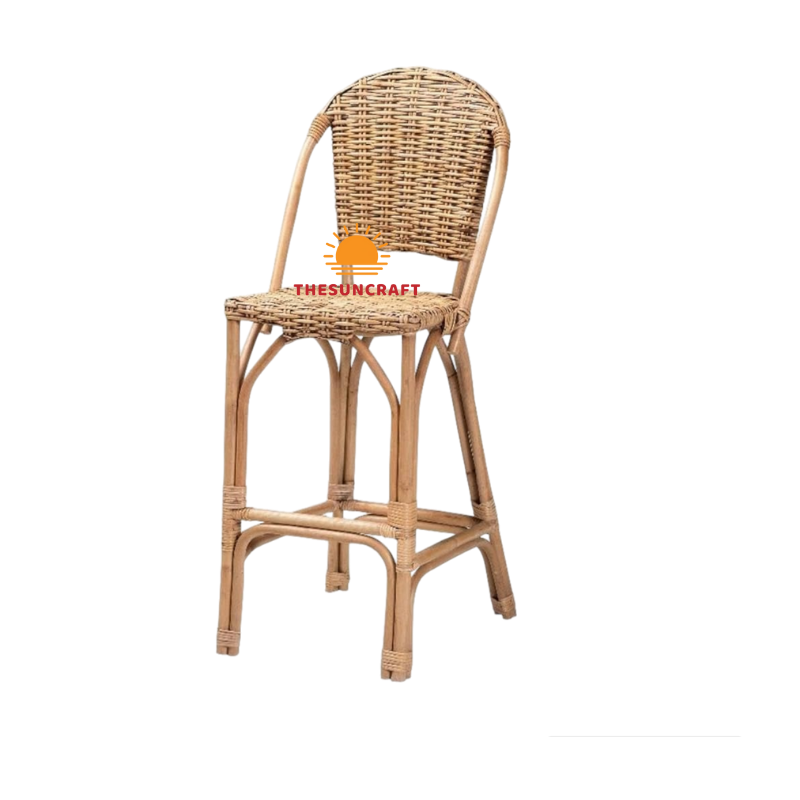 เก้าอี้บาร์ทรงสูงทันสมัยพร้อมพนักพิงหวาย เก้าอี้บาร์สำหรับบ้าน ร้านกาแฟ และเคาน์เตอร์ครัว ผลิตในเวียดนาม