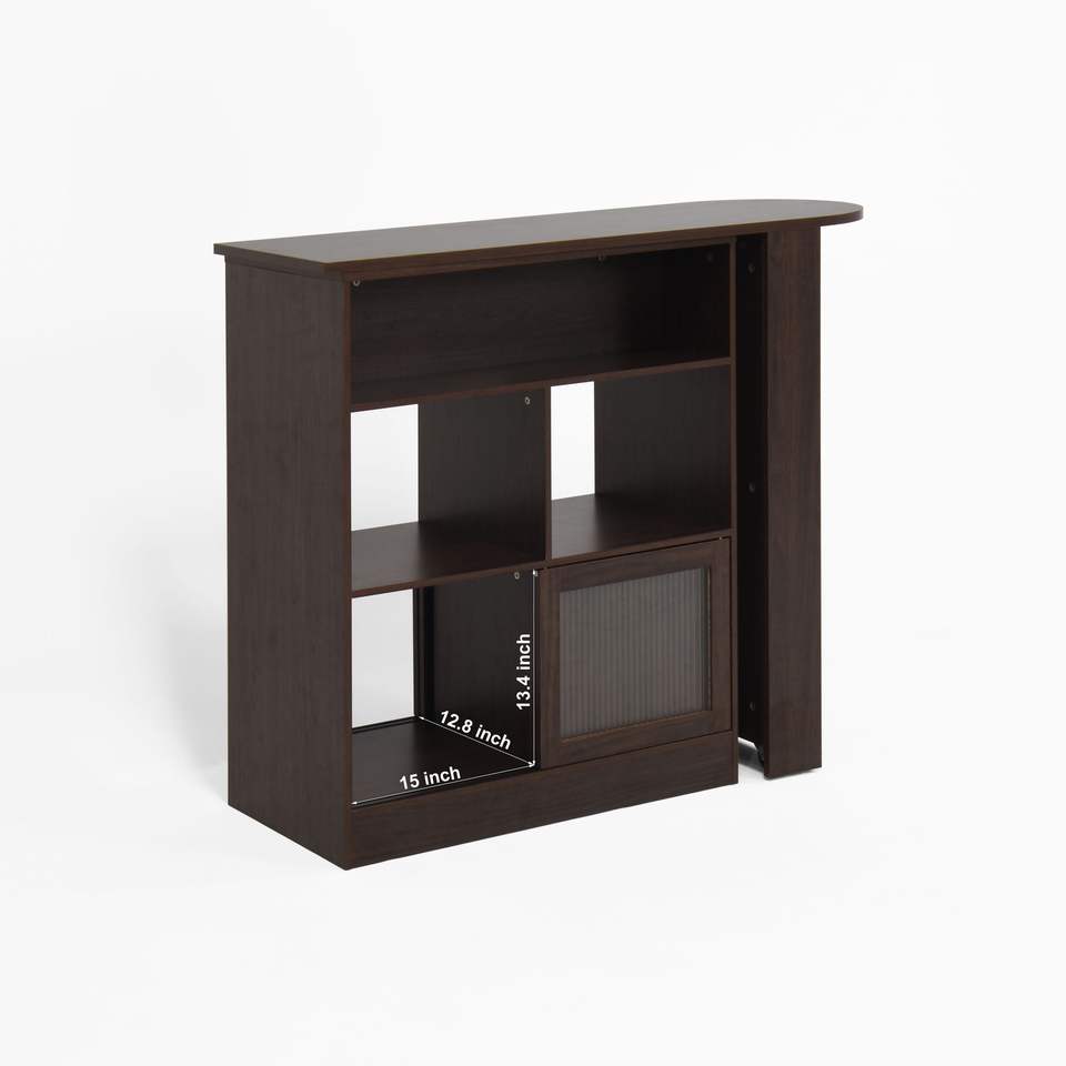ตู้บาร์ทรงสูงทันสมัยสำหรับโต๊ะอาหาร พร้อมช่องเก็บของ 6 ช่อง และประตูกระจกแบบร่อง 2 บาน พร้อมท็อปหมุนได้ เฟอร์นิเจอร์ครัว