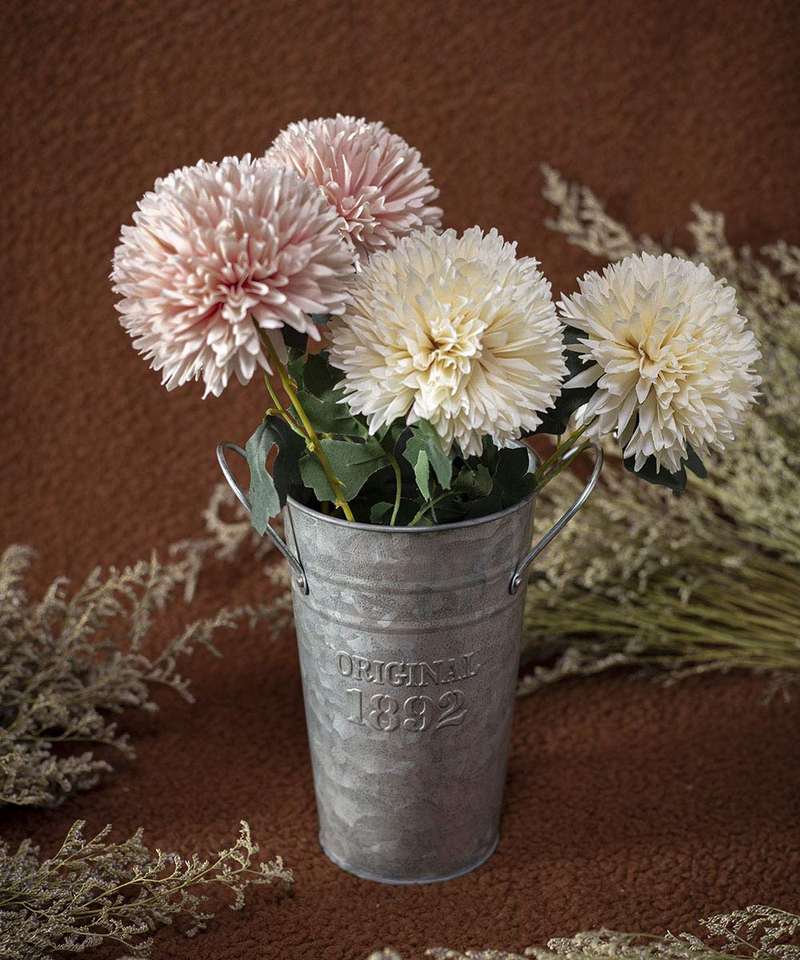 ที่ใส่ดอกไม้ตกแต่งแบบดั้งเดิมสไตล์ชนบทแจกันฝรั่งเศสทำจากสังกะสีพร้อมที่จับด้านข้างแจกันเหล็กติดผนังโลหะสังกะสี