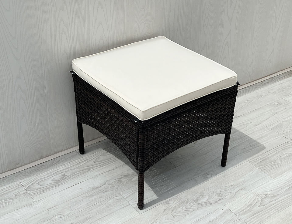 Rattan, steel, tempered glass, polyester cushion