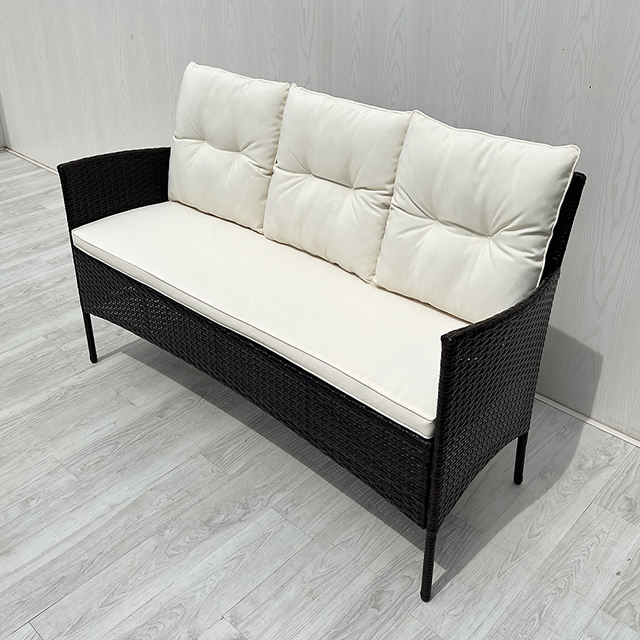 ชุดเฟอร์นิเจอร์หวายสีขาวครีมทันสมัยสำหรับลานบ้านกลางแจ้งเก้าอี้พักผ่อนในสวนโต๊ะกระจกทำจากไม้สำหรับวิลล่าในโรงแรม