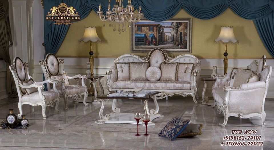 ชุดเฟอร์นิเจอร์ห้องนั่งเล่นสไตล์โมเดิร์นสีครีม ดีไซน์อิตาลี โซฟาแกะสลักด้วยมือ ขนาดสั่งทำได้ ทนทาน ทำจากไม้สัก