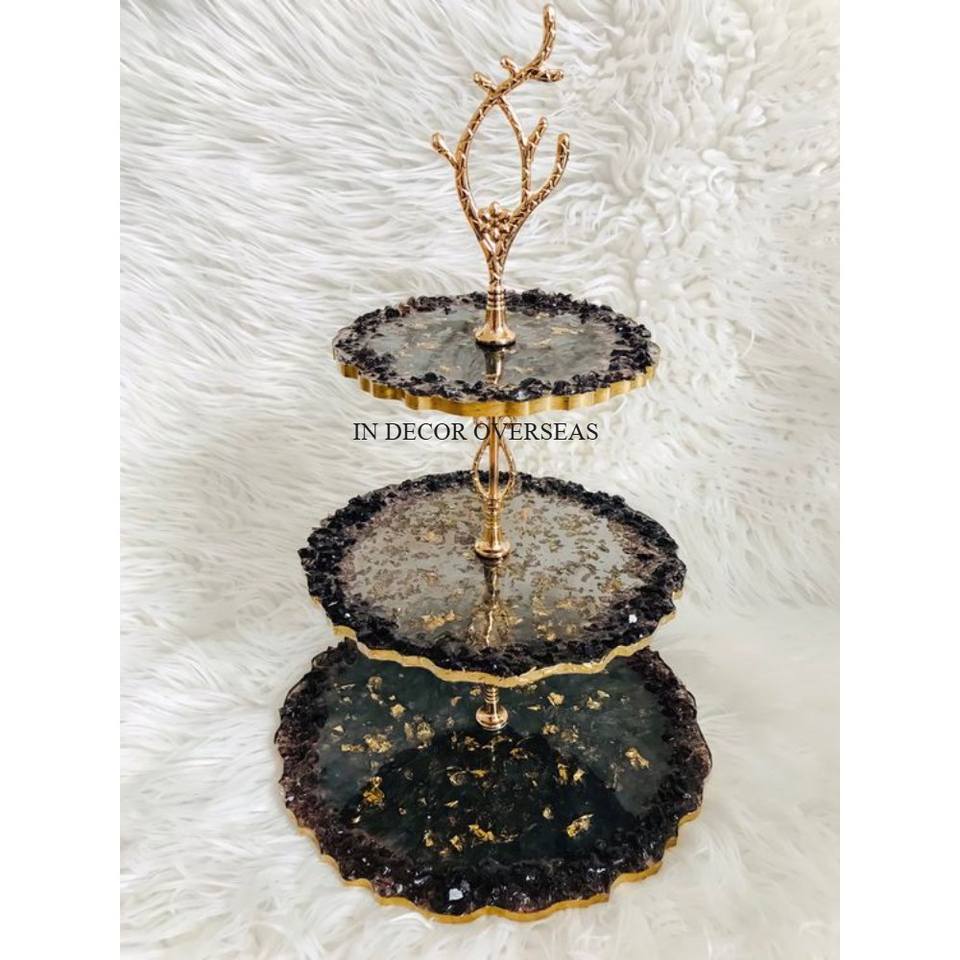 ขาตั้งเค้กทรงกลมเคลือบด้วยผงสีดำสำหรับนักออกแบบงานศิลปะที่ทันสมัยสีทองเกรดสูงจากอินเดีย