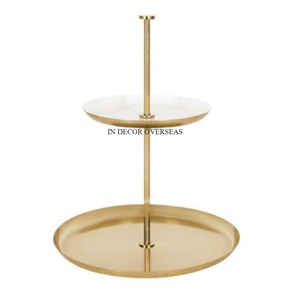 Modern Creative Arts & Craft High Grade Gold Plated Finest Quality Metal 2 Tier Cake Stand For Anniversaries & Birthday Parties