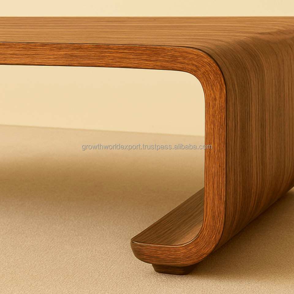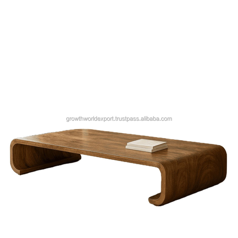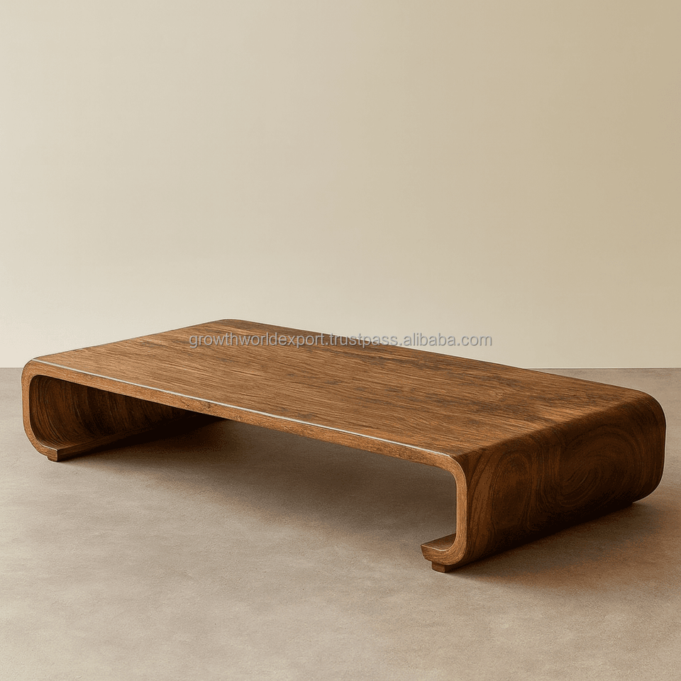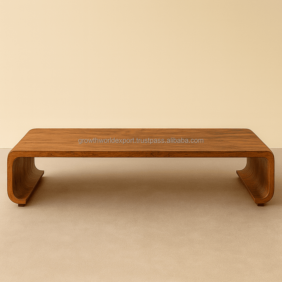 ม้านั่งไม้โค้งมนทันสมัย โต๊ะกาแฟไม้เนื้อแข็ง ม้านั่งนั่งเตี้ยสไตล์มินิมอล เฟอร์นิเจอร์ห้องนั่งเล่น
