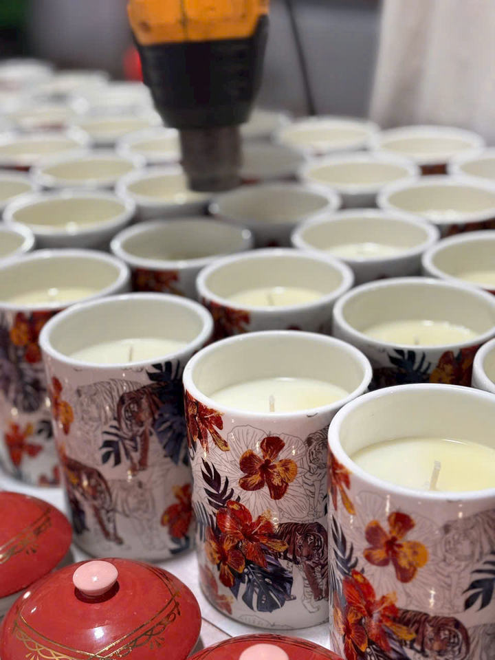 โหลเทียนเซรามิกมะพร้าวพร้อมน้ำมันหอมระเหยชุดของขวัญเพื่อการผ่อนคลายสำหรับวันคริสต์มาสและวันแม่ตามสั่งแบบทันสมัย