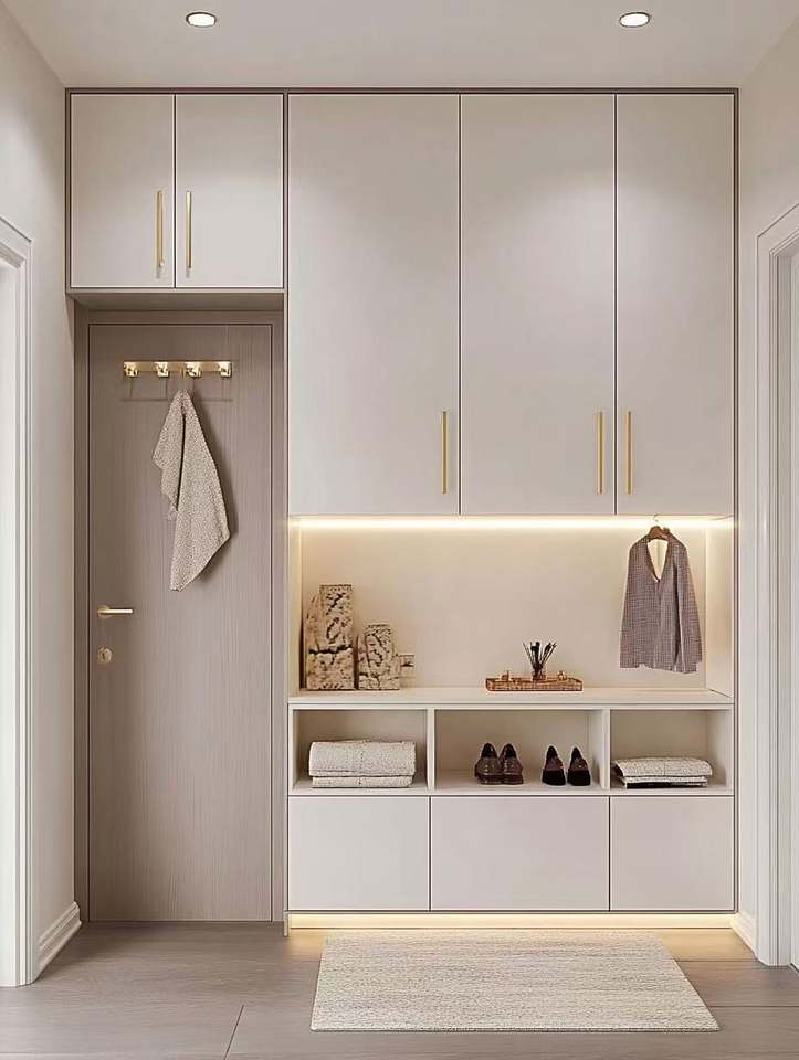 ตู้เก็บรองเท้าทางเข้าในร่มแบบกำหนดเองทันสมัยดีไซน์เฟอร์นิเจอร์ไม้หรูหรา