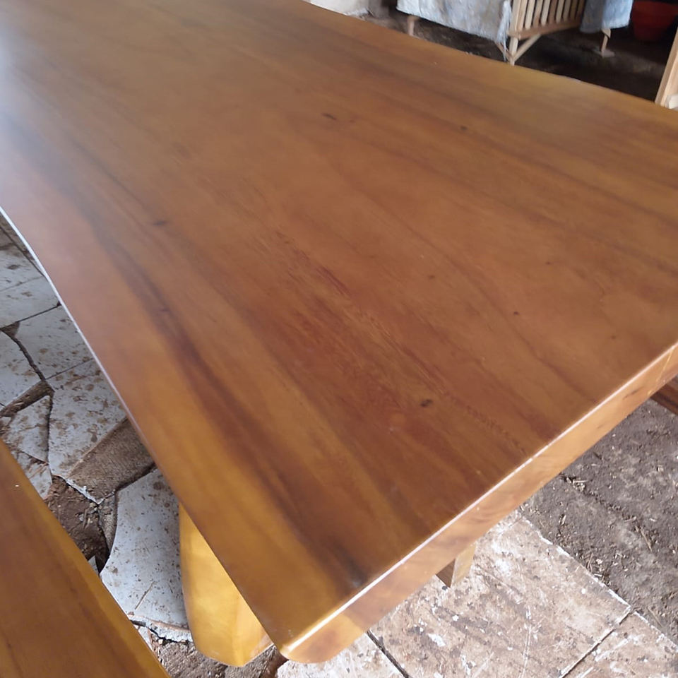 ชุดโต๊ะรับประทานอาหารไม้สักแท้แบบโมเดิร์นสั่งทำพิเศษ 6 ที่นั่ง พร้อมม้านั่ง 2 ตัว ดีไซน์มินิมอล ตกแต่งแบบธรรมชาติ สำหรับเฟอร์นิเจอร์ห้องรับประทานอาหาร