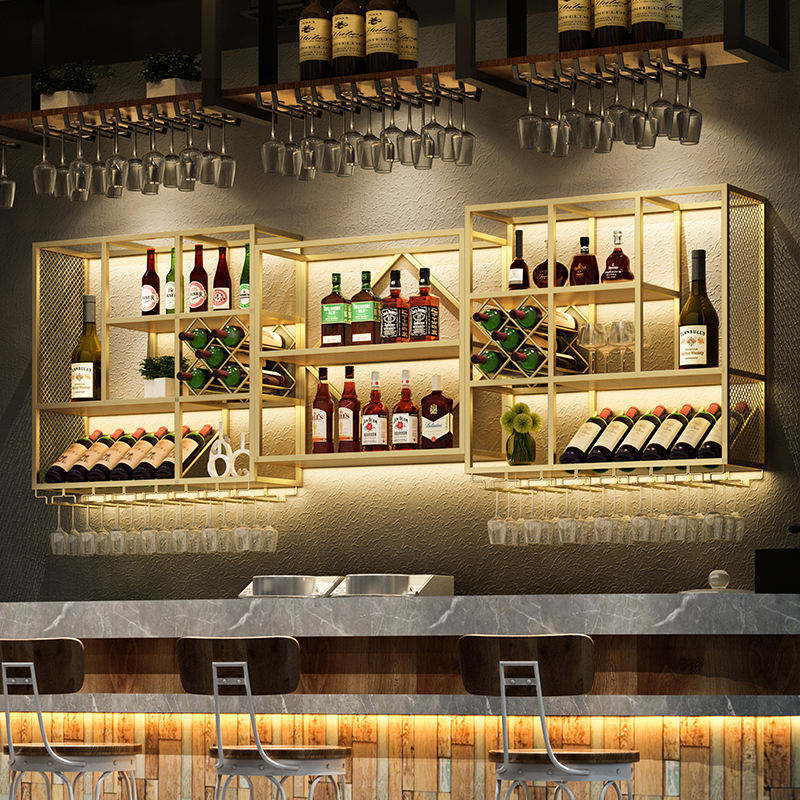 ชั้นวางขวดไวน์ติดผนังโลหะ