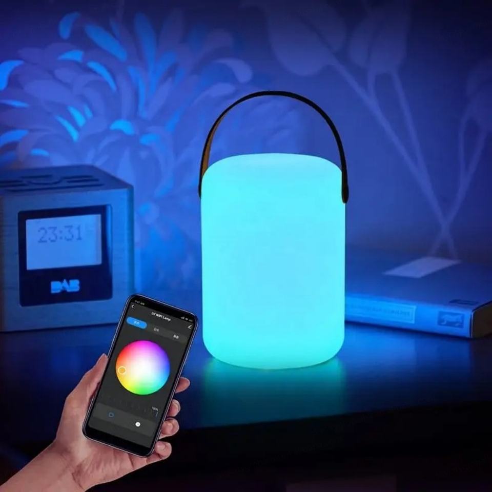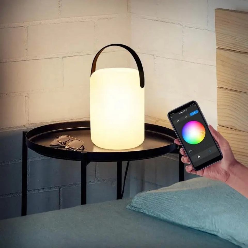 โคมไฟตั้งโต๊ะ LED ไร้สายแบบพกพา ทรงกระบอกทันสมัย ควบคุมผ่านแอป ใช้แบตเตอรี่แบบชาร์จ USB ได้