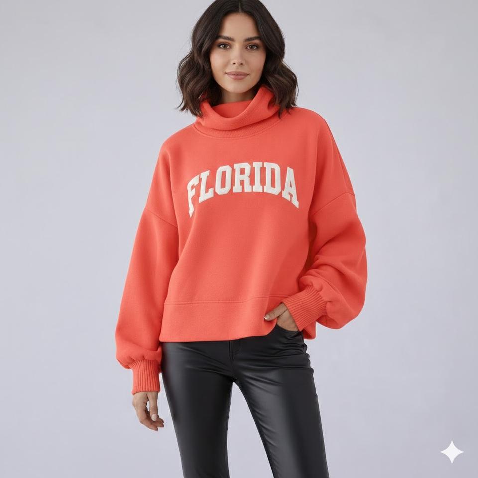 เสื้อสเวตเชิ้ตคอเต่าทรงหลวมปักลายสไตล์ลำลองสำหรับผู้หญิงยุคใหม่ ผลิตจากผ้าโพลีเอสเตอร์/คอตตอนฟลีซ โลโก้ด้านหน้า เหมาะสำหรับใส่ในฤดูหนาว รับผลิตแบบ OEM