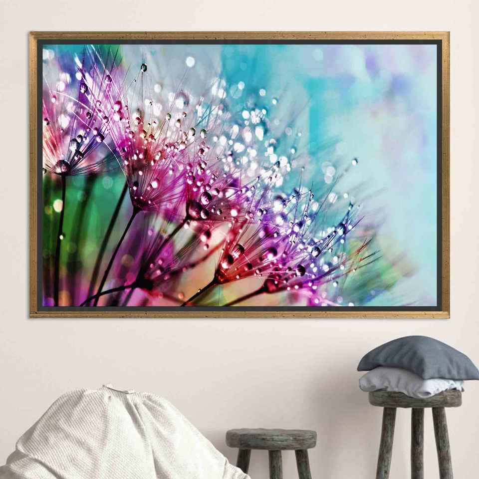 งานศิลปะบนผ้าใบพิมพ์ลายดอกแดนดิไลออนสมัยใหม่: ของตกแต่งผนังที่สวยงามและมีสีสัน ผ้าใบกรอบทอง