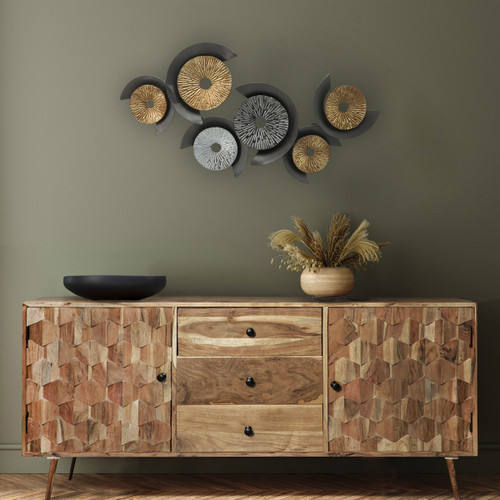 AK แผ่นทองเหลืองตกแต่งสมัยใหม่โบราณสีเทาทอง3D ศิลปะผนังโลหะสำหรับตกแต่งผนัง