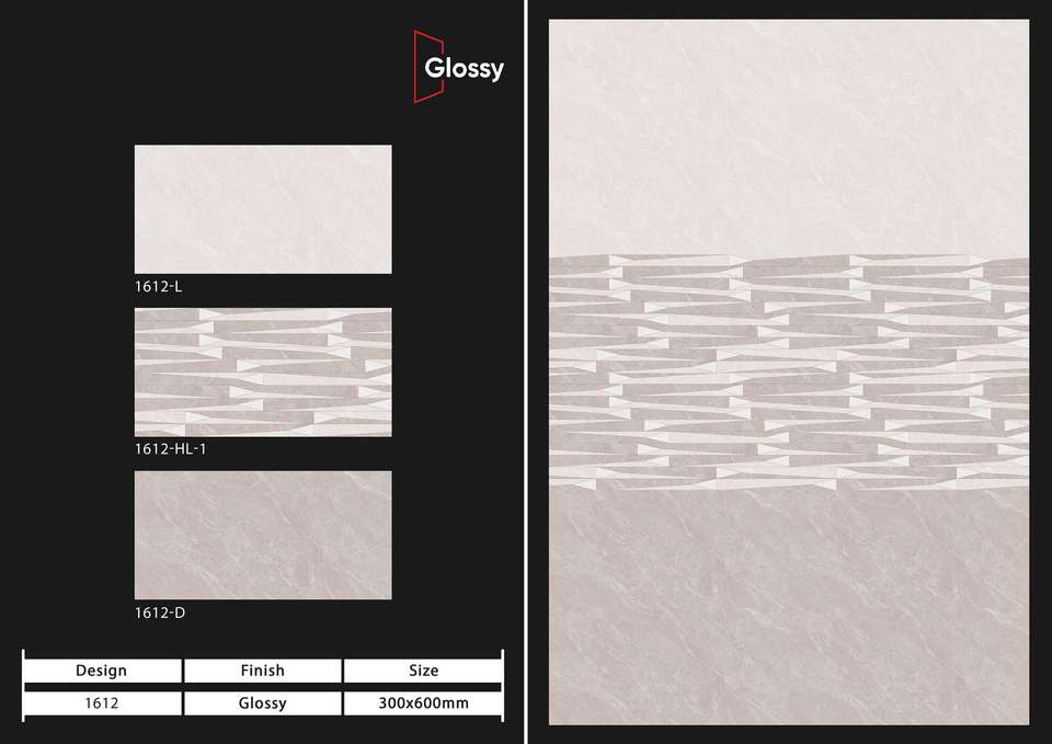 กระเบื้องพอร์ซเลนเคลือบเงาตกแต่งสไตล์โมเดิร์น ขนาด 300x600 มม. พัฒนาขึ้นเพื่อพื้นที่ที่ต้องการความสวยงามที่ทนทานและมีเสน่ห์ยาวนาน