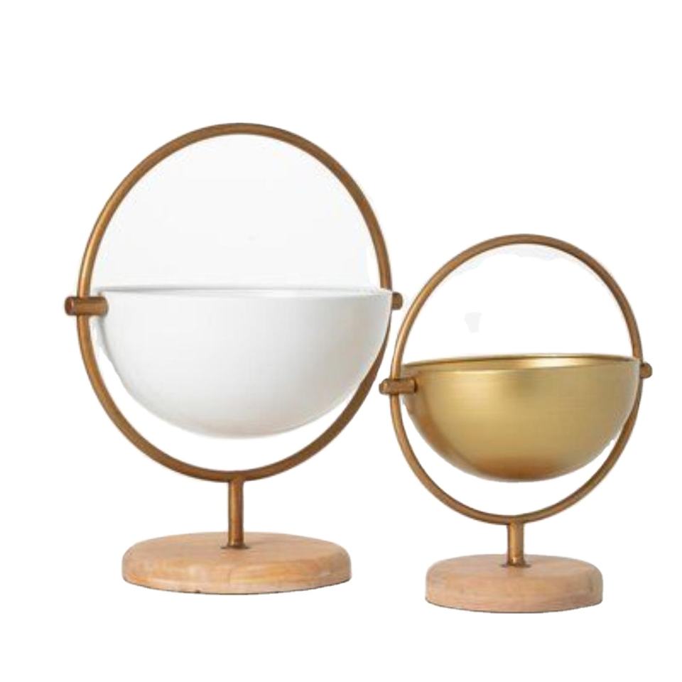 กระถางต้นไม้ตกแต่งที่ทันสมัยและกระถางดอกไม้โลหะตั้งโต๊ะแบบพกพาที่เคลือบด้วยผงสีทองและสีขาว