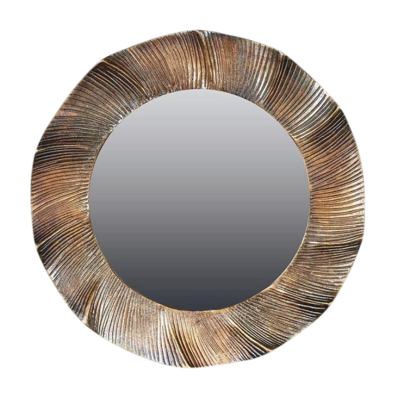 กระจกติดผนังทรงกลมตกแต่งสไตล์โมเดิร์นพร้อมกรอบโลหะทองเหลืองลายพิเศษสำหรับตกแต่งห้องนั่งเล่น ห้องนอน และทางเดิน