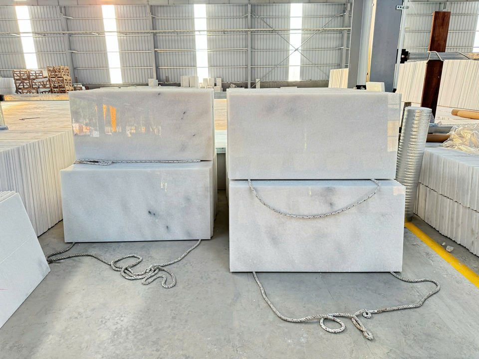 บันไดหินอ่อนสีขาวตกแต่งสไตล์โมเดิร์น พื้นผิวขัดเงา แผ่นหินธรรมชาติ สำหรับวิลล่ากลางแจ้งและโครงการเชิงพาณิชย์