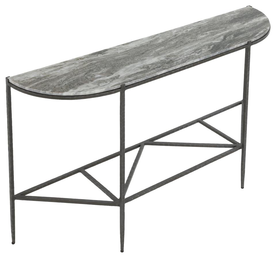 โต๊ะคอนโซลเปิดประทุน Demi Lune ทันสมัยพร้อมโครงเหล็กเคลือบผิวโลหะสีเทาเฟอร์นิเจอร์โรงแรม