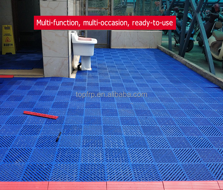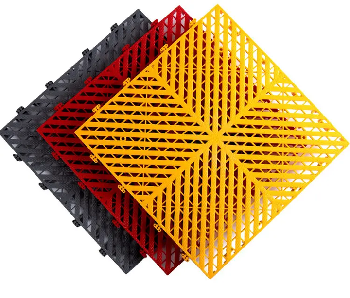 แผ่นพื้นหนา2.5ซม. แบบแยกส่วนกันลื่นแผ่นปูพื้น PP พร้อมตะแกรงระบายน้ำสำหรับล้างรถพื้นไวนิลดีไซน์ทันสมัย