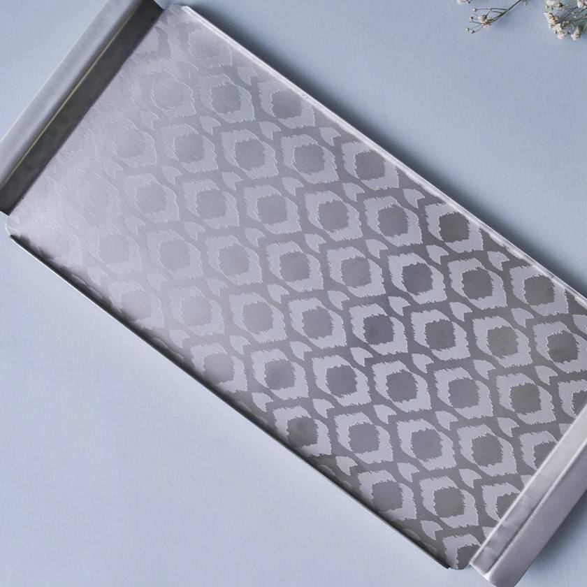 ถาดเสิร์ฟโลหะ2025ดีไซน์ทันสมัยแผ่นอัดลายเรขาคณิตสำหรับตกแต่งงานปาร์ตี้งานแต่งงานเลเซอร์