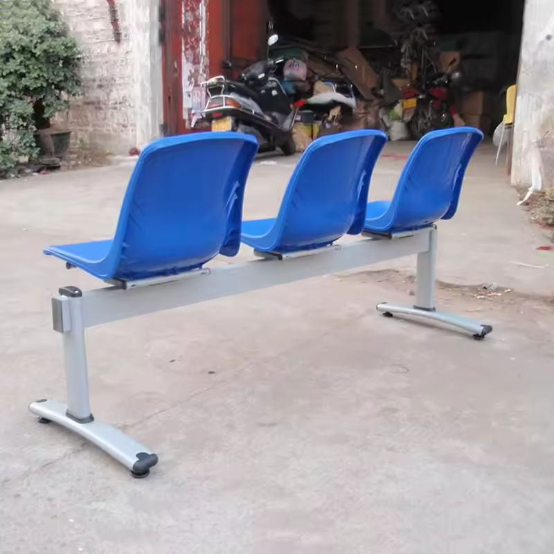 เก้าอี้แก๊งพลาสติก PE และเหล็กสีฟ้า3-Seater ดีไซน์ทันสมัยสำหรับโรงเรียนสถานีกีฬาในสนามบินและห้องรอ