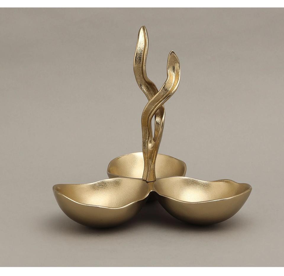 ชามผลไม้ชุบทอง3ส่วนชามช็อคโกแลตขัดเงาแฮนด์เมดสำหรับร้านอาหารโรงแรมดีไซน์ทันสมัย