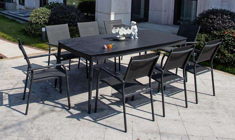 ชุดโต๊ะรับประทานอาหารอลูมิเนียม9ชิ้นพร้อมโต๊ะยืดได้ดีไซน์ทันสมัย