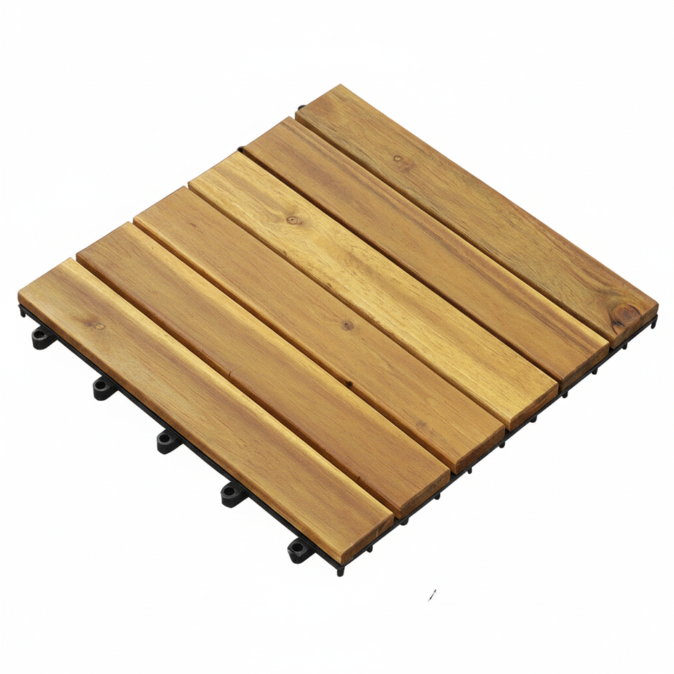 กระเบื้องไม้สักอะคาเซียที่ทันสมัยการออกแบบที่เชื่อมต่อกัน6บานสำหรับการติดตั้งในร่ม/กลางแจ้งพื้นพีวีซีกันน้ำเรียบ