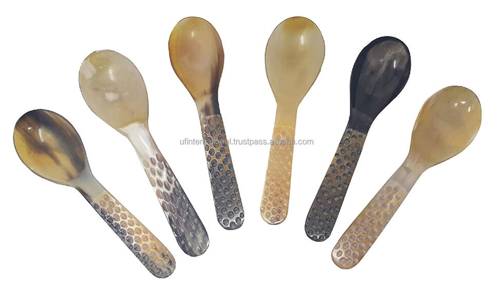 การออกแบบที่ทันสมัยสไตล์โบราณที่กำหนดเองการออกแบบบัฟฟาโลยาวฮอร์น4ช้อนสำหรับบ้านและร้านอาหารที่มีชิ้นธรรมชาติ