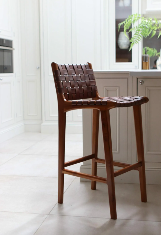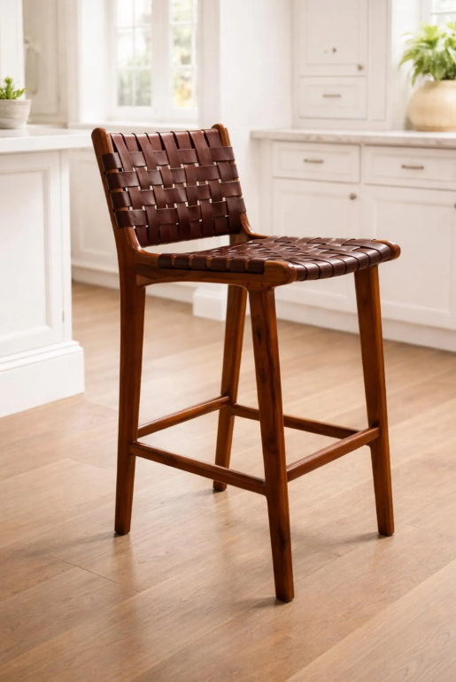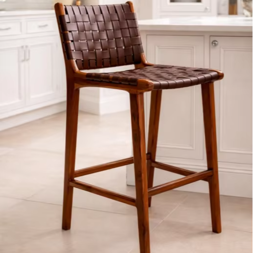 เก้าอี้บาร์ดีไซน์ทันสมัย คุณภาพดี ทำจากไม้สักธรรมชาติ พร้อมเบาะรองนั่ง เหมาะสำหรับบีชคลับ คาเฟ่ โรงแรม และลานบ้าน