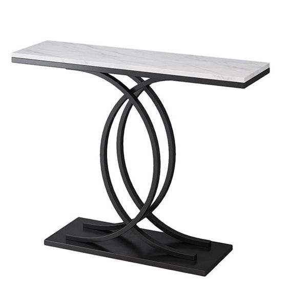 โต๊ะคอนโซลโลหะสีดำดีไซน์ทันสมัยพร้อมหินอ่อนสีขาวดีไซน์เพรียวบางสำหรับทางเข้าห้องนั่งเล่นหรือตกแต่งห้องโถง