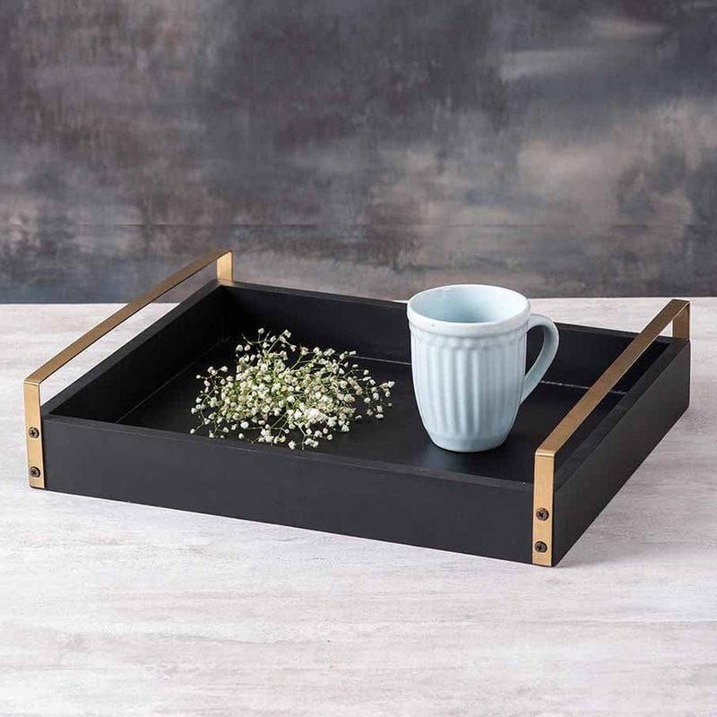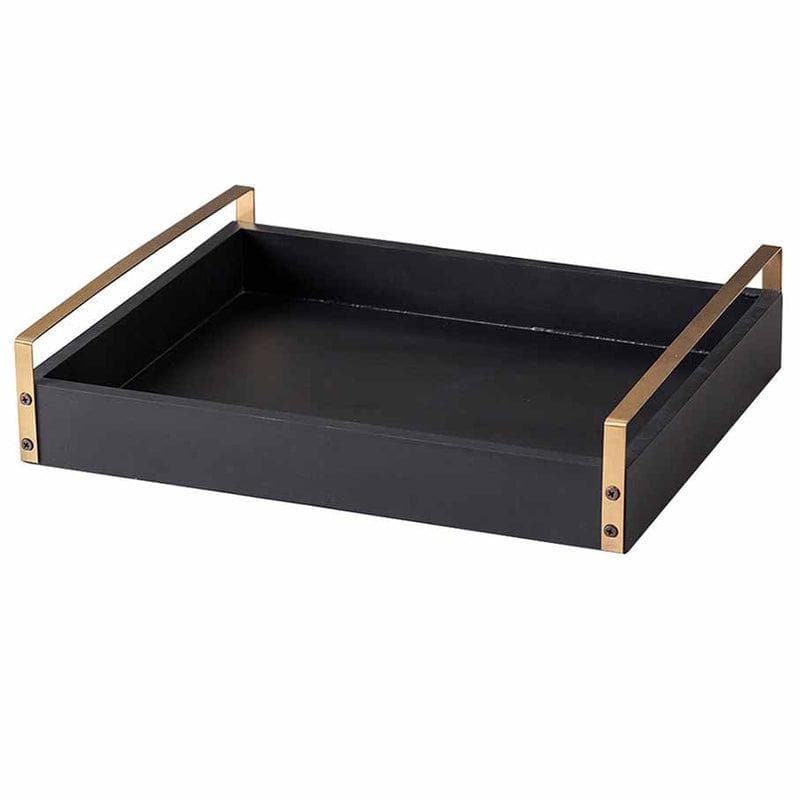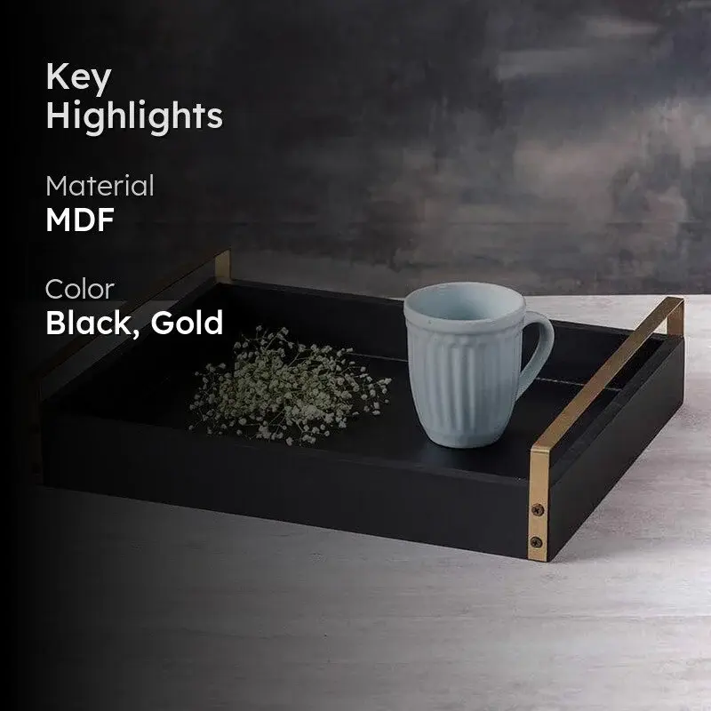 ถาดเสิร์ฟไม้สี่เหลี่ยมสีดำหรูหราทันสมัย พร้อมหูจับโลหะชุบทอง เกรดเชิงพาณิชย์ สำหรับร้านอาหารและโรงแรม