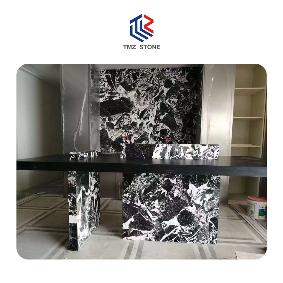 หินควอตซ์สีดำแผ่นใหญ่พื้นผิวขัดเงากันน้ำสำหรับโรงแรมและวิลล่าใช้ในร่มพร้อมตู้โค้ง