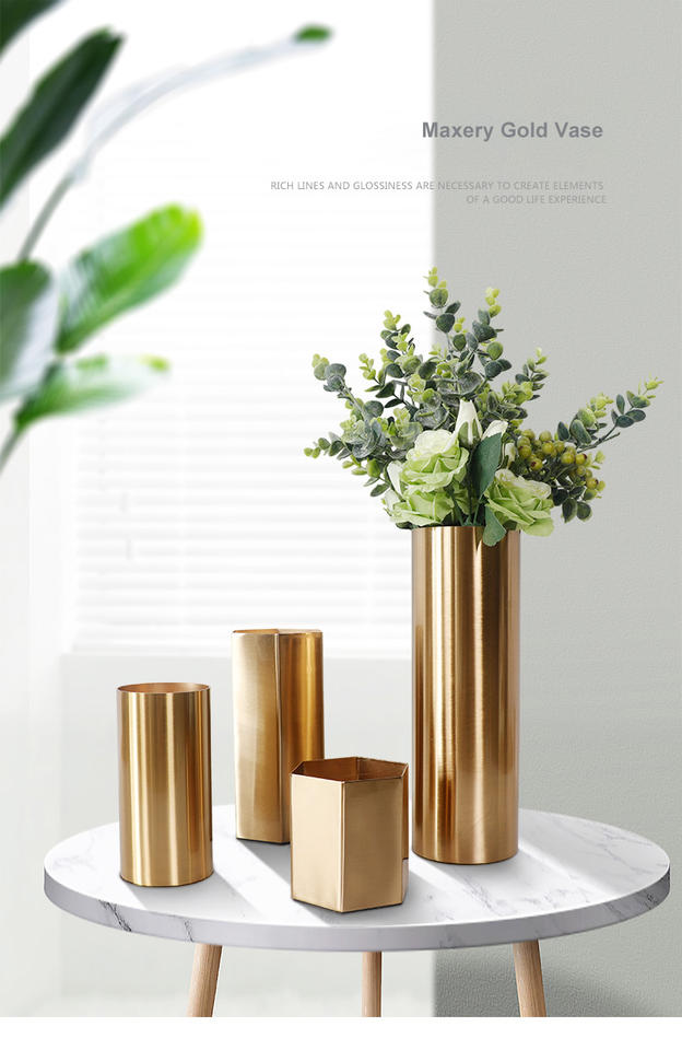 แจกันดอกไม้ทองเหลืองสำหรับตกแต่งสำนักงาน,แจกันดอกไม้ทองเหลืองตกแต่งโต๊ะแจกันดอกไม้โลหะทองเหลืองดีไซน์ทันสมัย