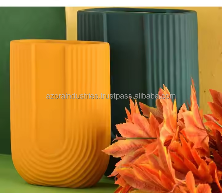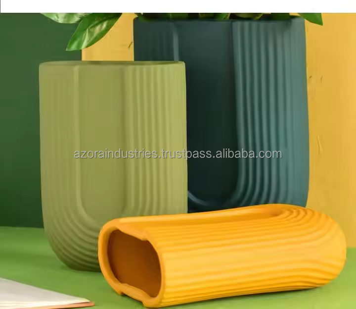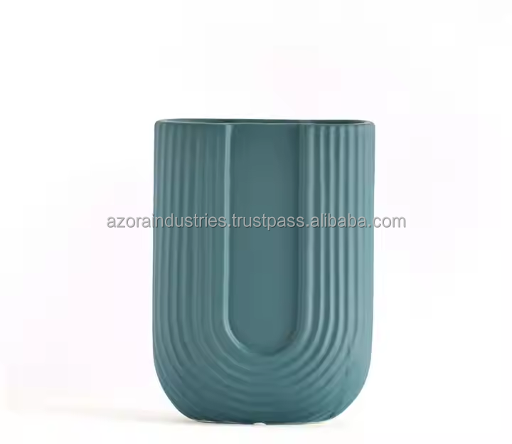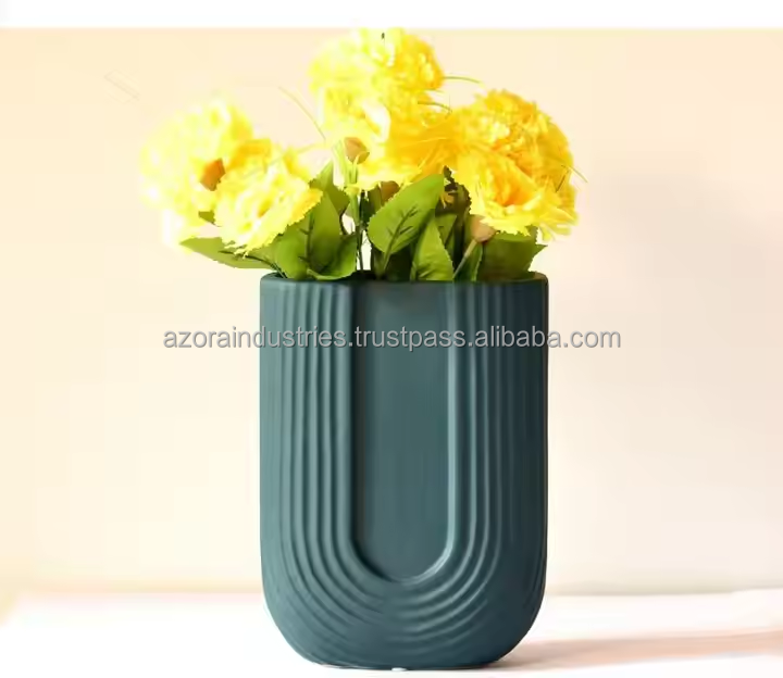 แจกันดอกไม้อลูมิเนียมหล่อที่มีเอกลักษณ์ผงสีเขียวเข้มสำหรับตกแต่งบ้านดอกไม้ไม่รวมโดยอุตสาหกรรม azora