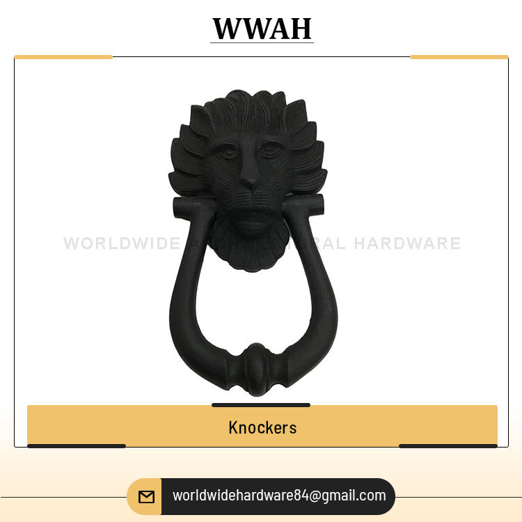 ที่เคาะประตูเหล็กหล่อสีดำอุปกรณ์เสริมประตูดีไซน์ทันสมัย
