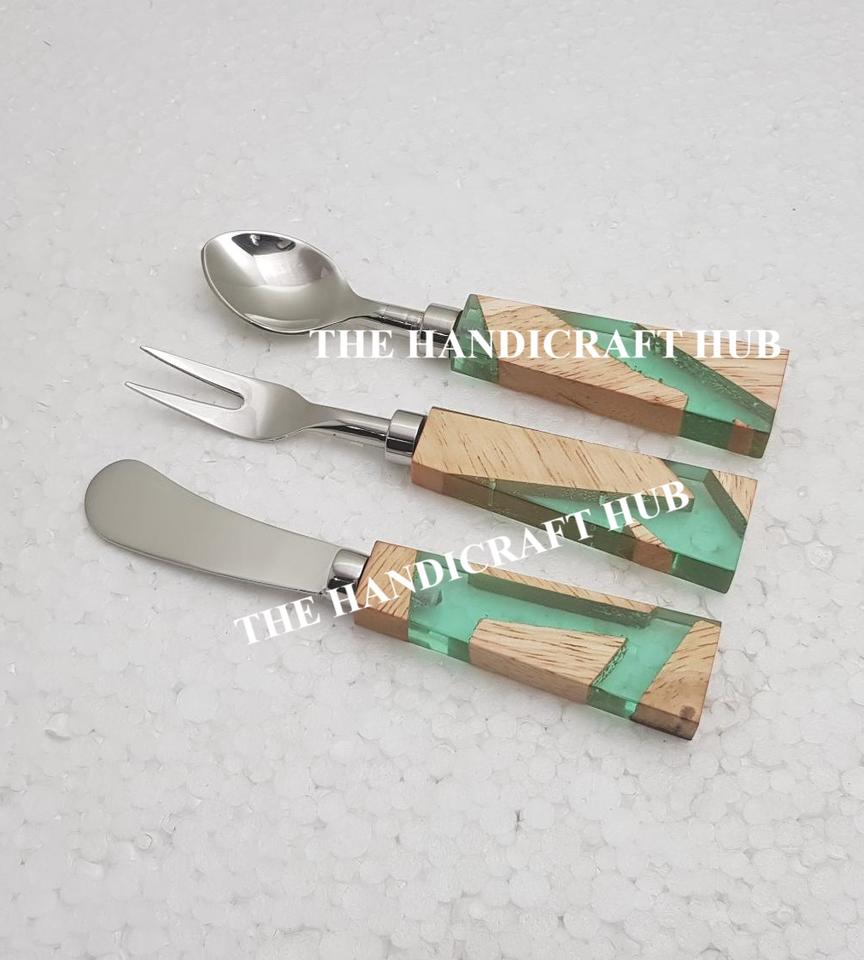 ชุดชีสดีไซน์ทันสมัย ชุดอุปกรณ์ครัว ชุดช้อนส้อมสแตนเลส ชุดชีสพร้อมด้ามจับไม้เรซิ่น ราคาสุดคุ้ม