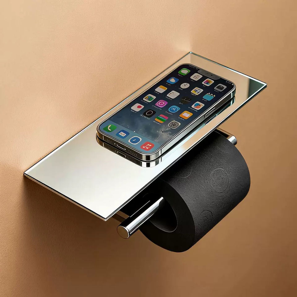 ชั้นวางของในห้องน้ำดีไซน์ทันสมัย รุ่นใหม่ ติดตั้งมุม ทำจากเหล็กเคลือบสีทองเหลือง สำหรับโรงแรม อพาร์ตเมนต์ ชั้นวางของในห้องน้ำ สีดำและสีขาว